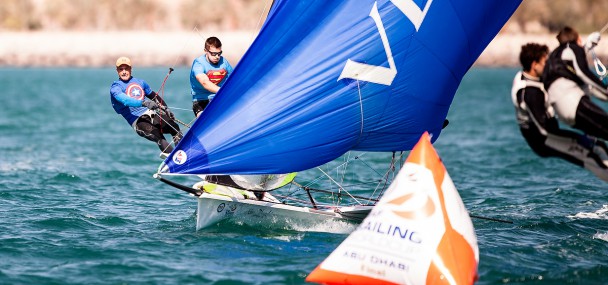 The pair picked up a second victory in the third race of the day but a sandwiched tenth tarnishes their good start. Nonetheless the Kiwis had some great racing as Maloney explained, “It was beautiful conditions out there with a nice Abu Dhabi breeze and really nice waves. We were on Course C in front of the Emirates Palace and it was pretty nice out there. The first and last race we had 8-10 knots and it dropped down and got a bit interesting, it’s really nice racing out there.