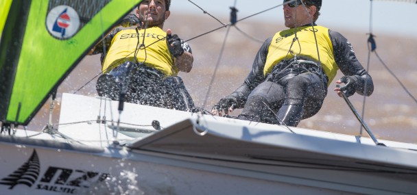 Aside from the two big names in 49er, there is a huge amount of talent in the fleet, and plenty of teams ready to show the sailing establishment to turn their gaze beyond the boys down under. On building form are Britain’s John Pink and Stuart Bithell. Pinky missed going to London 2012, but Stu went in the 470 and claimed a Silver medal on home waters, a surely inspiring experience. Inspiring is how this duo has been sailing of late, emerging from the mix in a talented British squad and putting the pressure on their squad rivals to come up with top performances at big events in order to be usurped from their leading position.