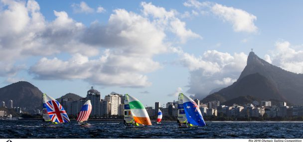 There is no stand-out favourite for gold in the brand new Women’s Skiff fleet, and after day one of competition things aren’t much clearer. Of all the teams that might have been expected to be topping the leaderboard, few would have picked the Canadians. Yet Erin Rafuse and Dannie Boyd scored a 5,4 to hold a one-point lead over one of the acknowledged favourites, local sailors Martine Grael and Kahena Kunze (BRA), who won the second race of the day just as the sun was setting over their home town.