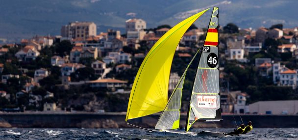 Bissaro and Frascari have dominated the 11 Nacra 17 races in Marseille, winning four, claiming three seconds and a third, fourth and fifth. An eighth, which they discard, in the opening race of the series is their worst result of the week.