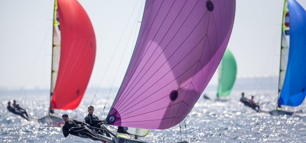 On the 49erFX side, it’s Conti and Clapcich who are in the lead. They didn’t have their best day but did better than Echegoyen and Betanzos who slip to third after leading going into the day. With only 11 points separating the top thee the 49erFX course will be the one to watch on the final day.