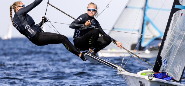 Germany’s Victoria Jurczok and Annika Lorenz finished fifth and sixth in today’s races to extend their lead to 10 points over the next team, which is now Offerman and de Ruiter. The other Dutch team, the World Champions Bekkering and Duetz, could only manage a 21, 15 from the day, dropping to 9th overall after leading in the strong winds at the start of the week.