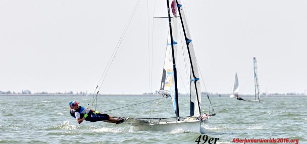 The 49er class sailed in the afternoon. Erwan Fischer and Thibault Julien from France were the most impressive team today. The German team Tim Fischer and Fabian Graf also had a good day. They’re second with a gap of six points. Surprise of the day is the Spanish team of Marti Llena and Santiago Alegre. They had some great races (1st and 2nd today) but also had some tough races (13th and 21st). Overall they didn’t made it to the top three yet.