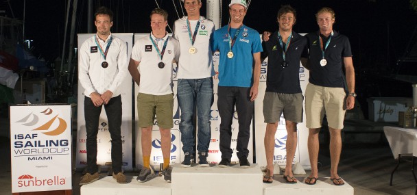 Five teams had potential to win the Miami World Cup 2015 heading into the medal race. It was a blustery day with winds in the low teens, plenty of shifts and pressure changes and a suitable challenge for these top 49er sailors.