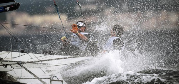It was far worse for another British team, John Pink and Simon Wheeler, who started the day in 3rd. Some sub-par performances saw them drop down the rankings to the point where they were in danger of missing top 9 qualification. In the final race they surged into the lead, and although Outteridge caught them on the final beat, they were second as they gybed for the finish line. Then, a massive gust and a capsize saw them tumble to 13th in that race, and down to 11th overall. “A bit gutting,” said Pink. “I think that puts us in the repechage.” Tomorrow the teams from 10th to 21st overall compete in the Petit-Finals for one coveted place in the Final. So Pink might yet find redemption from that capsize. “We have it all to do again tomorrow, a mini-series to get ourselves back in the Final, and see where we go from there.”